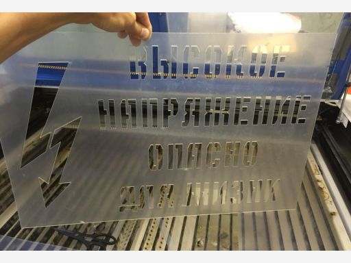 Наша компания занимается изготовлением промышленных трафаретов на заказ из долговечного пластика ПЭТ толщиной 0,5-3 мм или прочной самоклеящейся пленки Oracal 641 (для более гладких поверхностей). Гарантируем полное соответствие готового шаблона исходному макету — изделия позволяют максиально точно передать надписи и специальные символы.